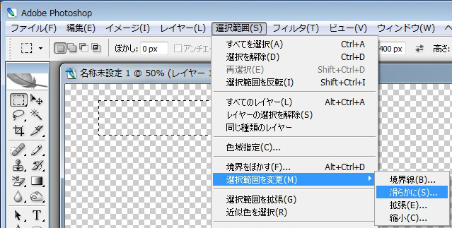 または、矩形選択の時でオプション「ぼかし」で設定しておくと
