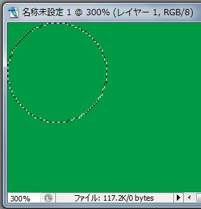 その後、楕円形選択ツールを選択しShiftキーを押しながら真円を描きます。