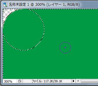 真円の選択範囲に戻し、残りの角に当てて選択範囲を反転した後、