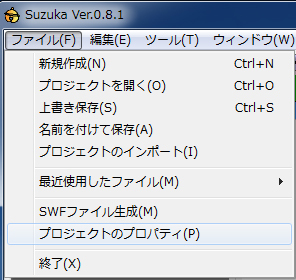 Suzukaを起動した後、「ファイル」 - 「プロジェクトのプロパティ」をクリックします。