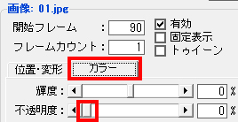 「カラー」をクリックした後、「不透明度」を「0%」にします。