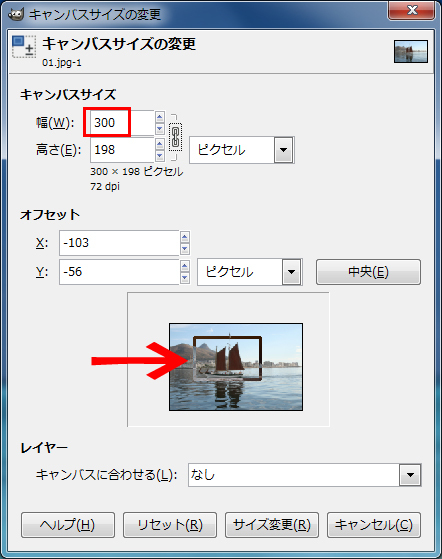 画像の拡大縮小ではなく、キャンバスサイズの変更を行う場合は