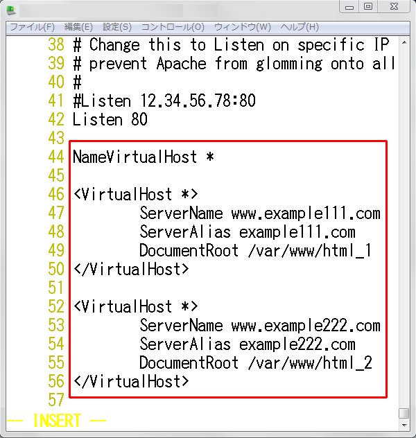 Apacheのバーチャルホスト設定