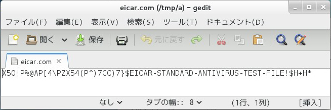 /tmp/aディレクトリのeicar.comを開いたところ。 開くことが出来ました。