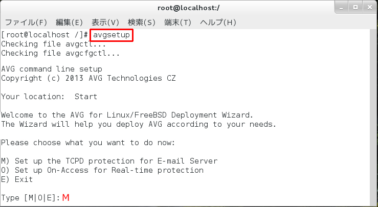 対話形式で設定を実施する場合はavgsetupコマンドから設定していきます。