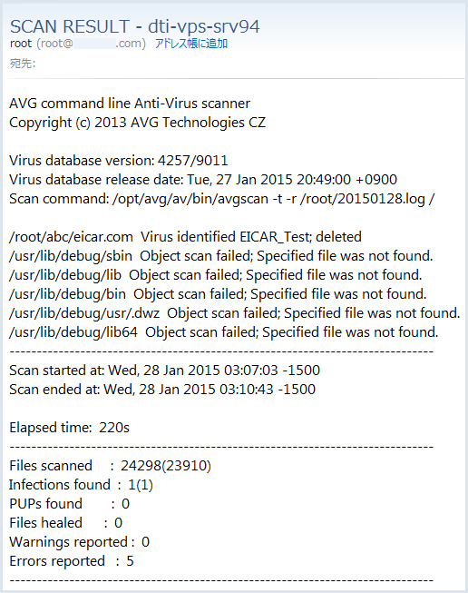 CentOS7へAVG アンチウイルス無料版 for Linuxをインストールし設定しました。