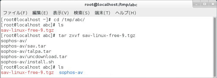 sav-linux-free-9.tgzを格納し、解凍しました。