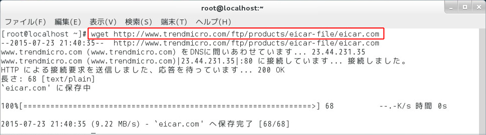 4. オンアクセス検索(≒リアルタイムスキャン)によるウィルス検知確認