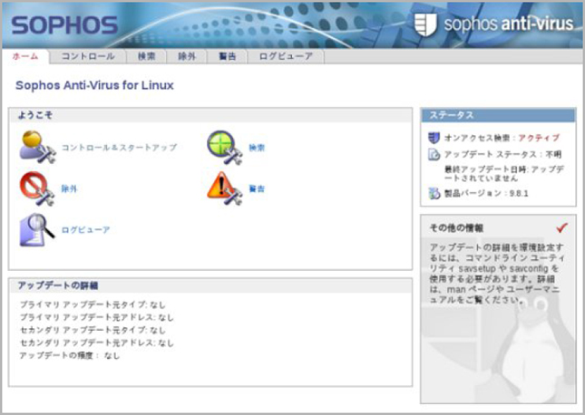 Sophos Anti-Virus GUI Web ブラウザ経由でアクセスするユーザーインターフェース