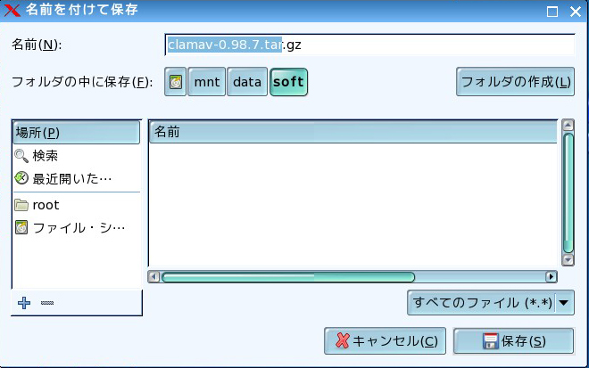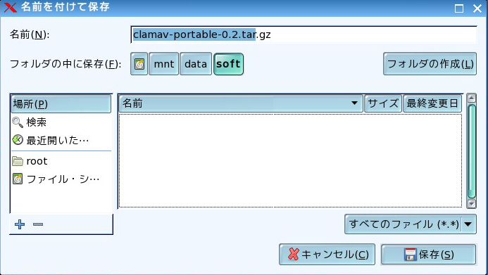 保存先は、先ほど作成した「ソフトの保管用ディレクトリ」(/mnt/data/soft)にしました。
