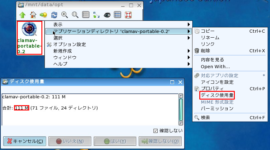 もしも「/rootや/usrなどへclamav-portable-0.2を移動した」場合は、