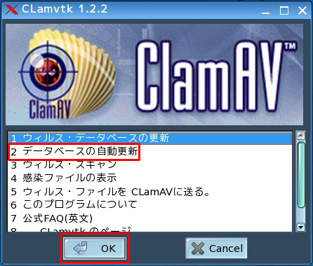 「1 ウィルス・データベースの更新」を選択し、「OK」をクリックします。