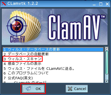 「3 ウィルス・スキャン」を選択し、「OK」をクリックします。