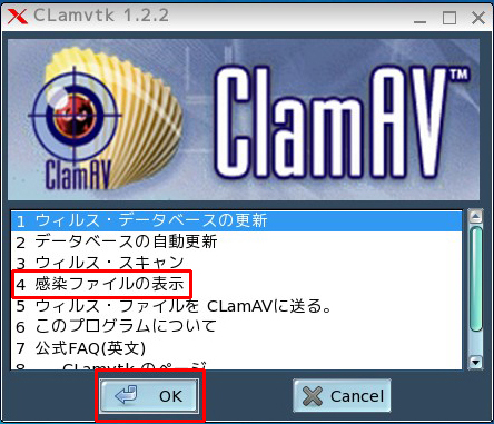 「4 感染ファイルの表示」を選択し、「OK」をクリックします。