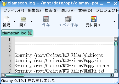 スキャンのログは、clamscan.logに都度、追記されていきます。