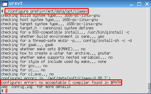 ./configure prefix=/mnt/data/opt/clamav