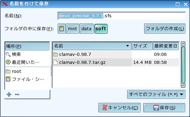 「devx_precise_5.7.1.sfs」を選択し、「OK」をクリックします。