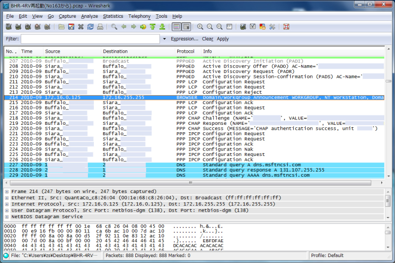 PPPoEクライアントのキャプチャログ