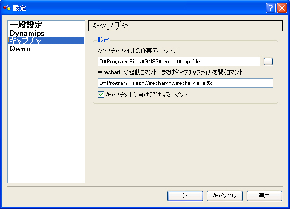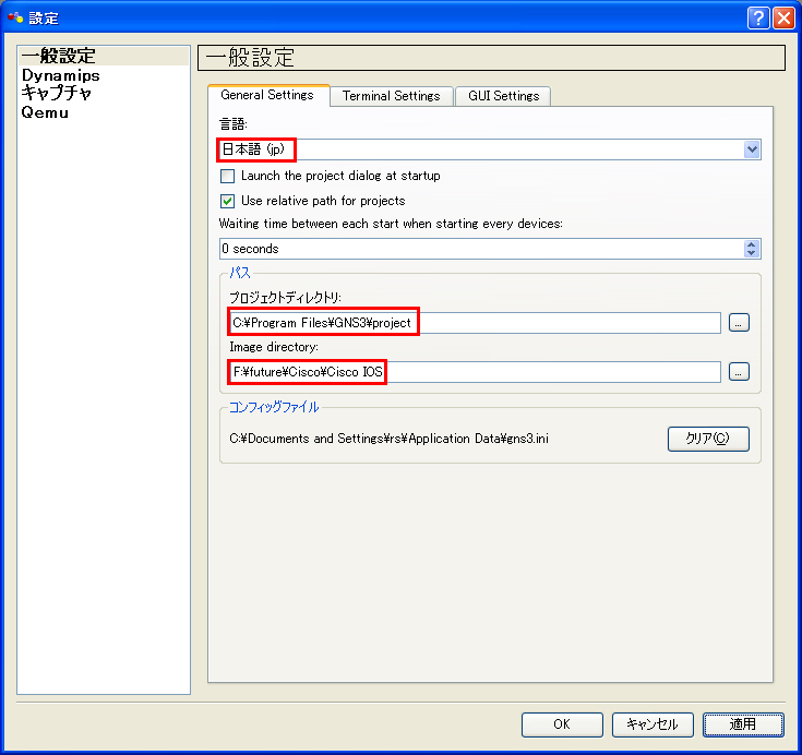 GNS3(GUIでのciscoルータエミュレータ)の設定方法