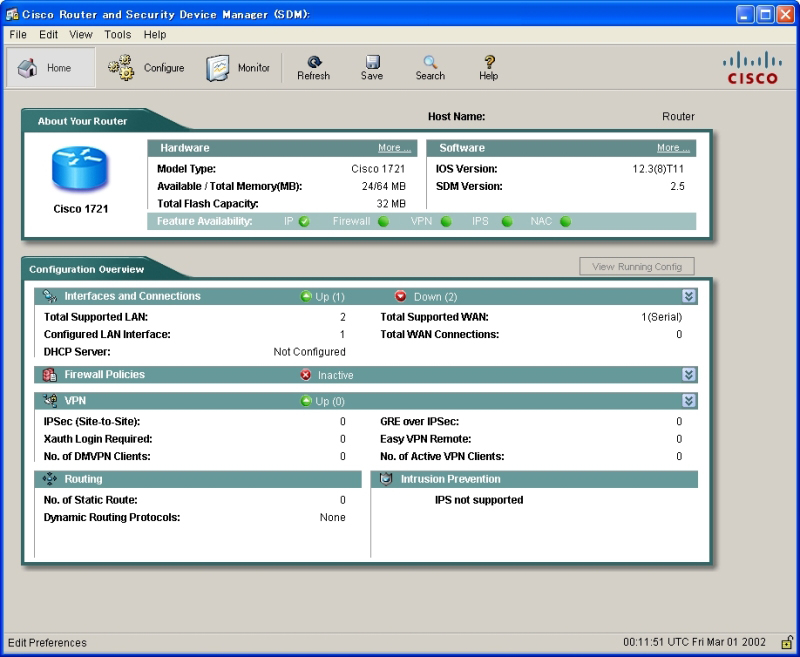 Cisco 1721の設定初期化とSDMのセットアップ
