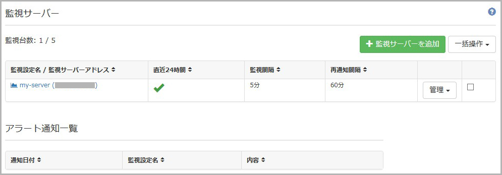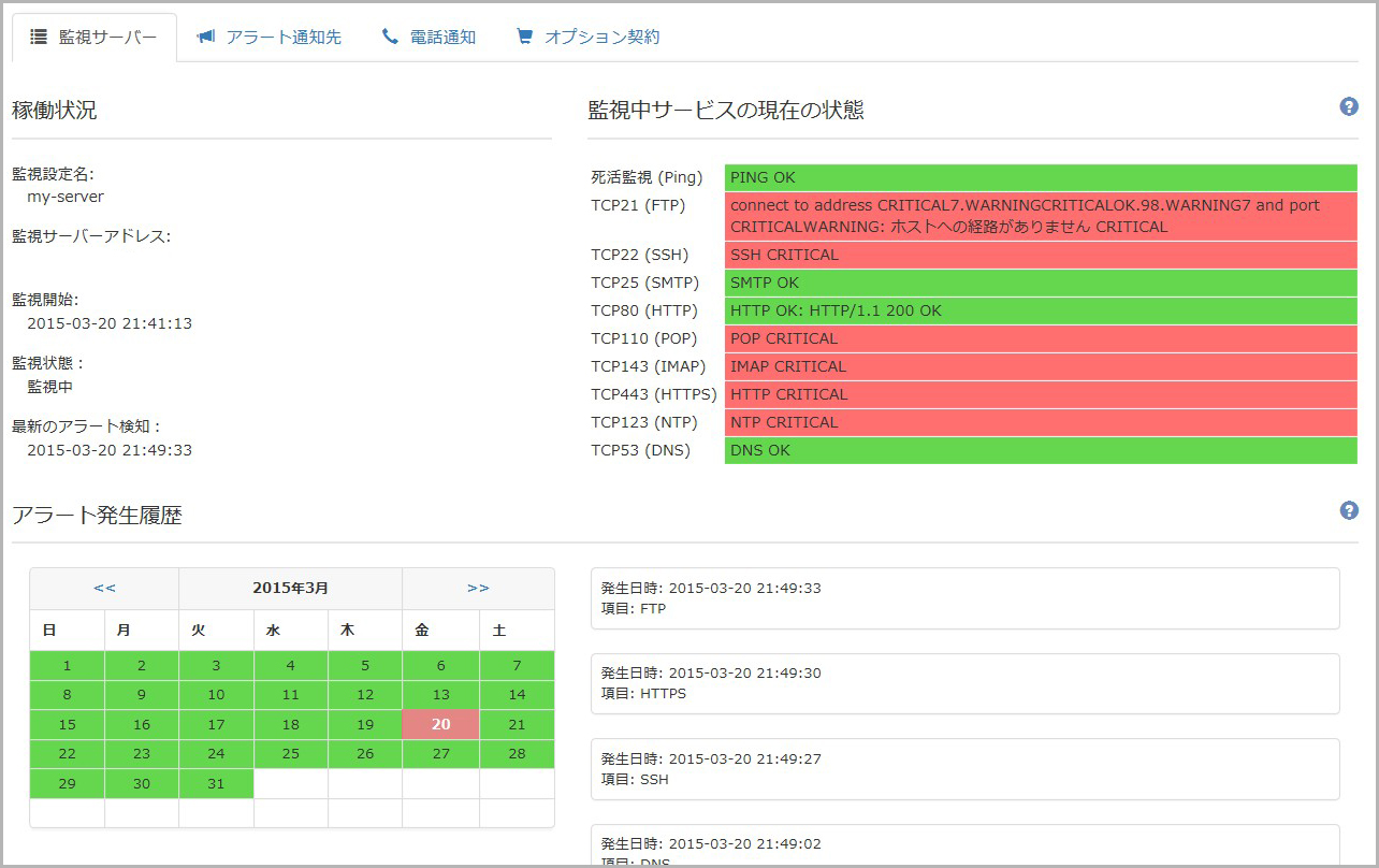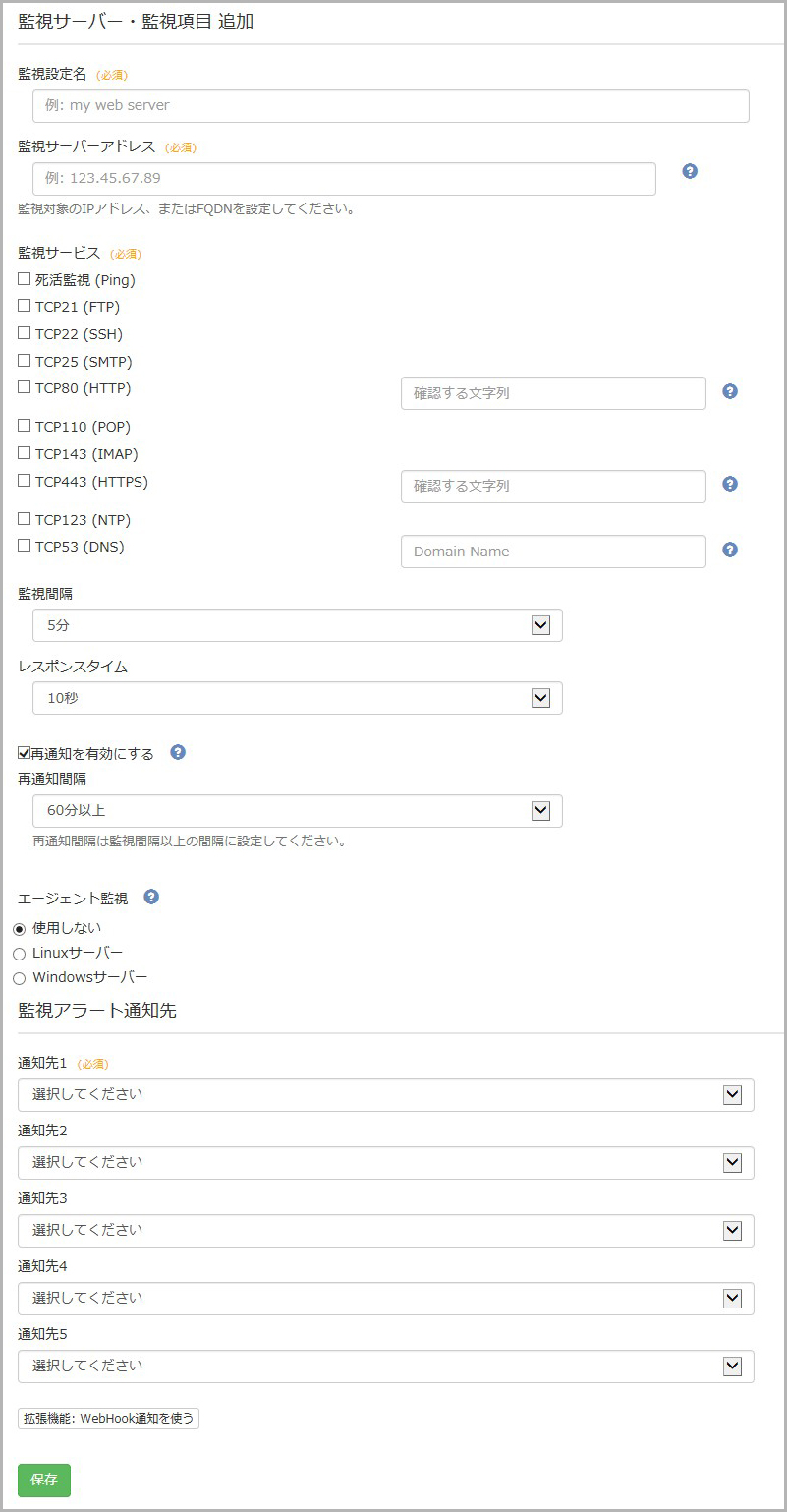監視するサーバ・サービスなどを入力し、「保存」をクリックします。