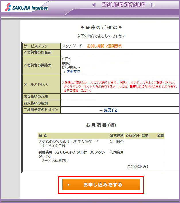 さくらインターネットのさくらのレンタルサーバの申し込み方法です。