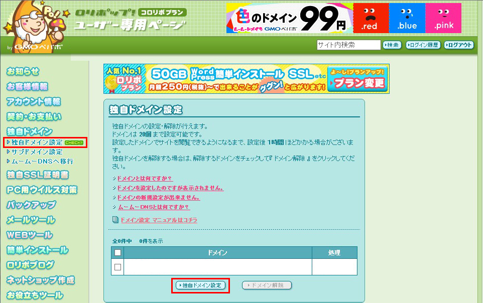 では、ムームードメインでの独自ドメインの取得方法とロリポップでの設定方法を