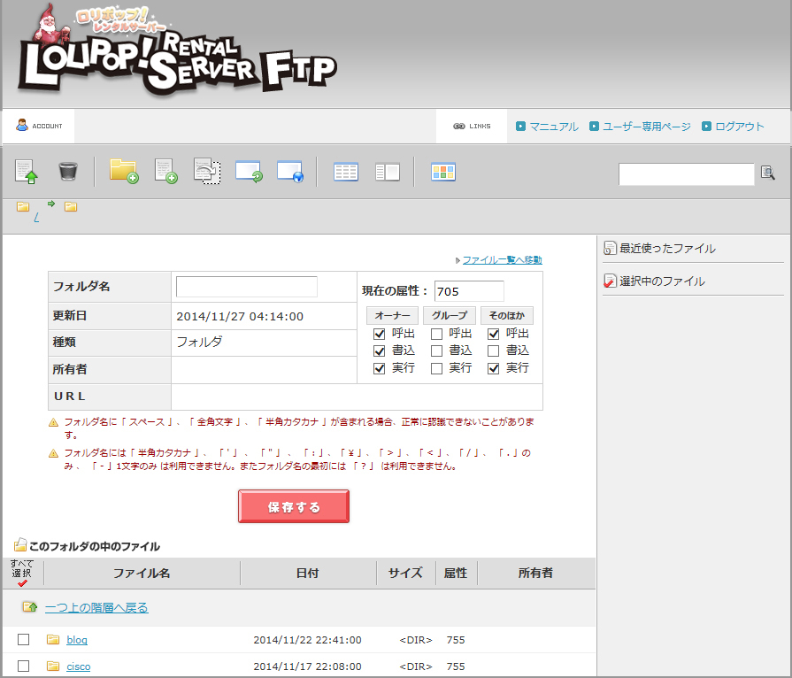 ロリポップFTPの画面