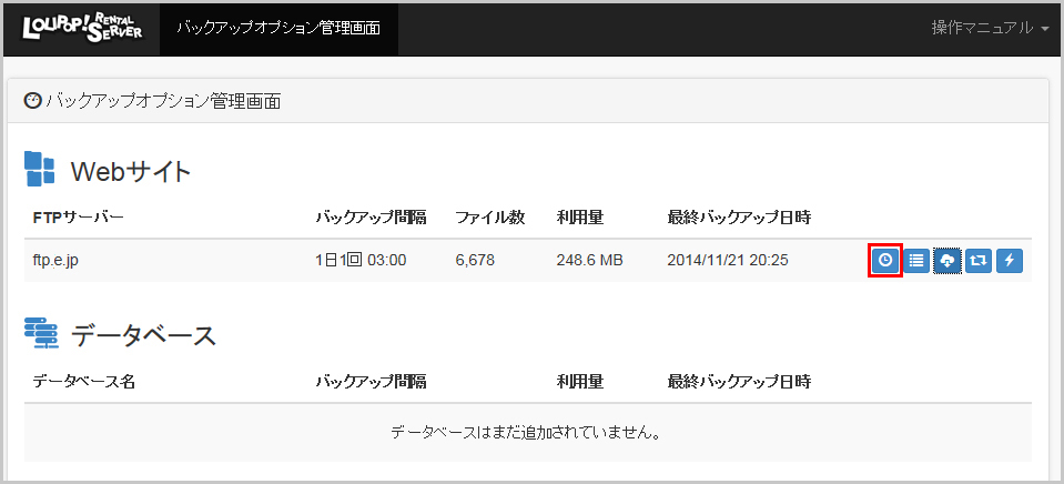 「バックアップ管理画面」をクリックします。