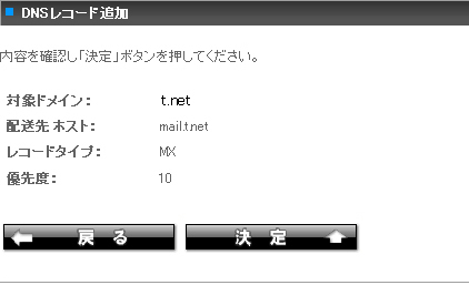 MXレコードの追加画面
