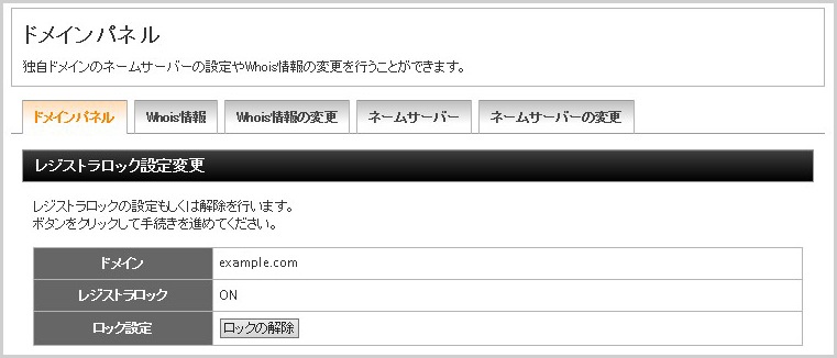 ※レジストラロックとは、不正なドメイン移管(レジストラ変更)防止のために