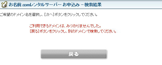 既に他者がそのドメインを取得している場合は以下の画面が表示されますので