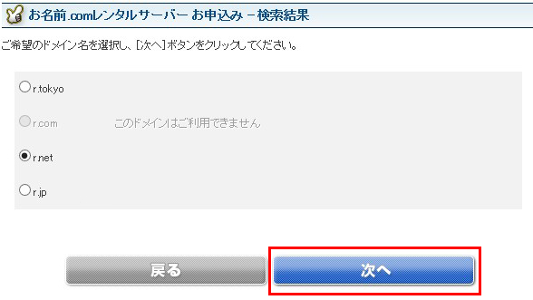 .netや.jpなどトップレベルドメインを含めた使用したいドメインを選択して