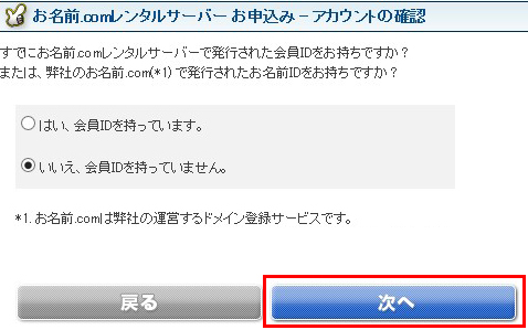 「いいえ、会員IDを持っていません。」を選択し「次へ」をクリックします。