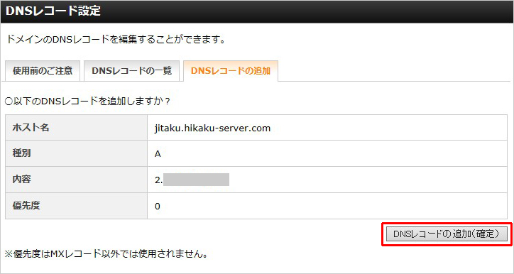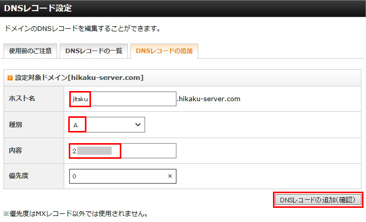 ※「優先度」はMXレコードの場合のみ有効になる機能です。