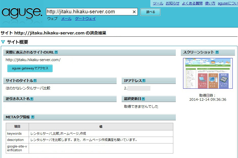 その後、他の回線から、設定したドメイン「http://jitaku.hikaku-server.com」