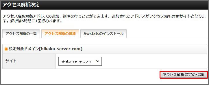 「アクセス解析設定の追加」をクリックします。