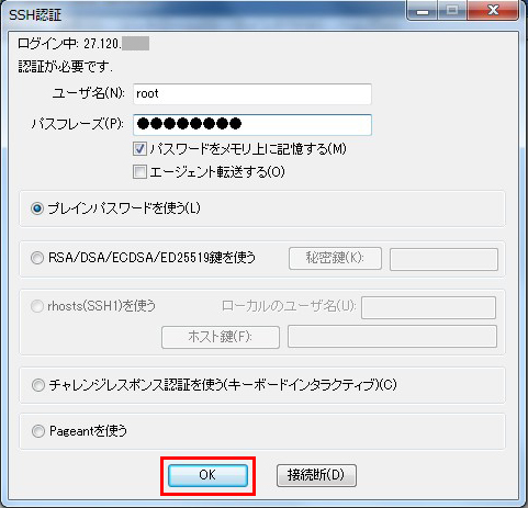 現在パスワード認証でSSH接続しているTeraTermのウィンドウは最終的に