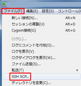 ファイルを受信するには「ファイル」→「SSH SCP」をクリックします。