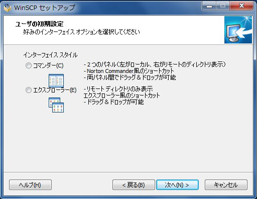 WinSCPのインストール時に「コマンダー」か「エクスプローラー」から選択できます。