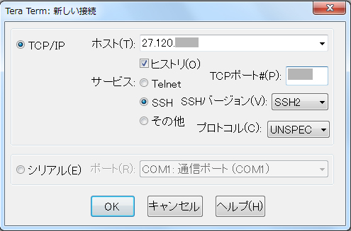 SSH接続ソフトはTeraTermを使用しました。