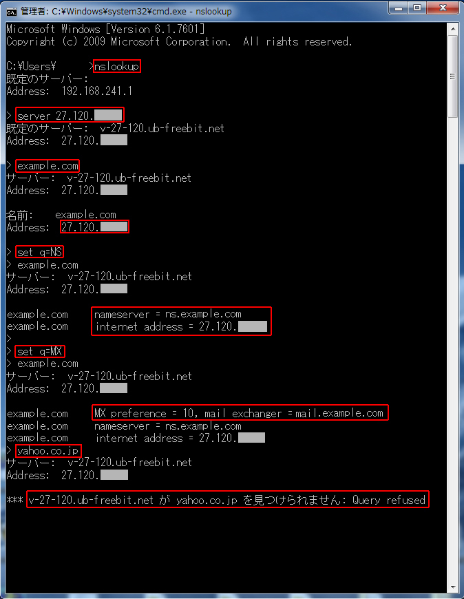 自宅からnslookupで確認しました。