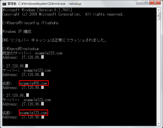 (リゾルバ)のコマンドプロンプトでipconfig /flushdnsでDNSキャッシュを
