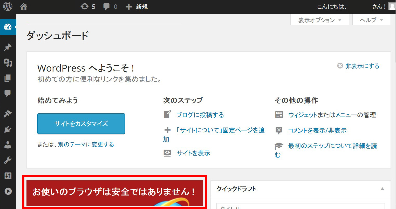 「お使いのブラウザは安全ではありません!」と表示されていたのでMicrosoftで