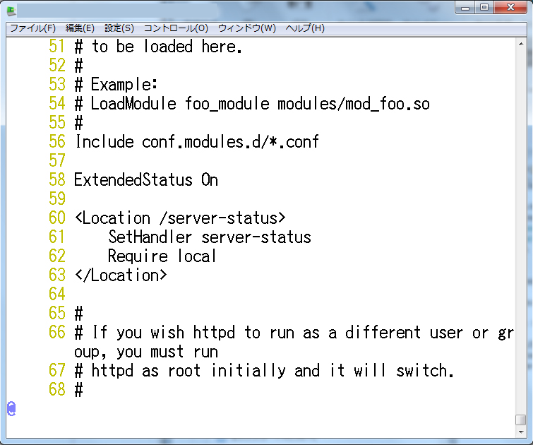 拡張ステータスの取得と、localからのserver-statusへのアクセスを