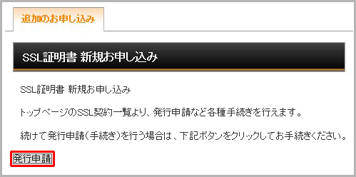 「SSLの新規取得」の「追加のお申し込み」をクリックします。