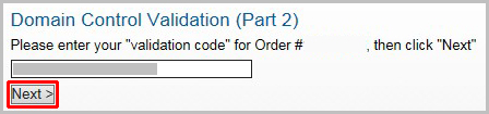 comodoのSecureCoreページにてvalidation codeを貼り付けて「Next >」をクリックします。