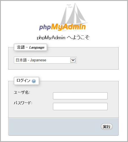 PHPの設定画面(phpMyAdmin)です。