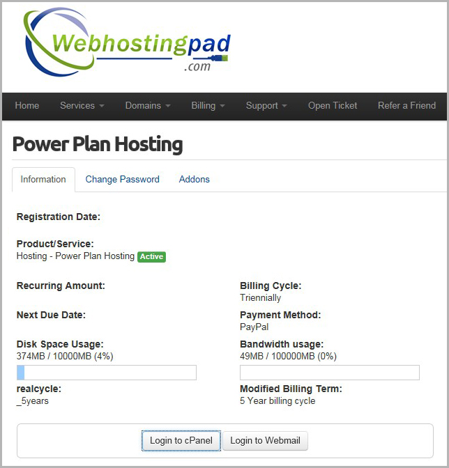 コントロールパネルへログインする場合は「Login to cPanel」を